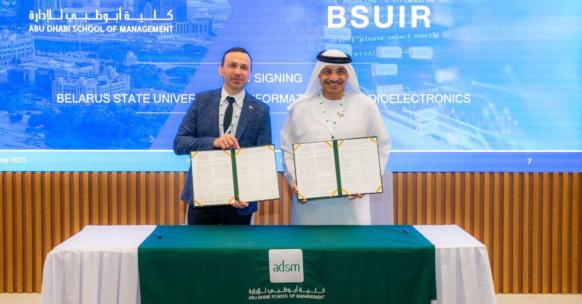 The Abu Dhabi School of Management (ADSM) and the Belarusian State University of Informatics and Radioelectronics (BSUIR) have signed a strategic Memorandum of Understanding (MoU) during the 2025 International Conference on Artificial Intelligence Management and Trends (ICAIMT), organized and hosted by ADSM in collaboration with the Abu Dhabi Chamber.